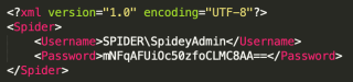 You may, for example, find no quick wins - no plaintext credentials, no advance to go and collect $200. Instead, you may find something like a reference in the source code to an external configuration file. The application may use this configuration file to look up some values and then utilise them. Imagine a reference in the source code to something like the below, we’ll call the file it references spiderconfig.xml.