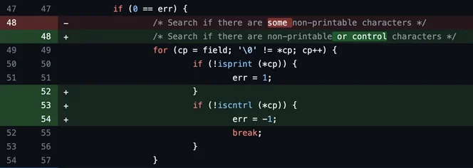 Now, if control characters are detected then -1 is returned to err (quitting out of chfn), treating them the same as the illegal characters. This little bug has been assigned CVE-2023-29383.