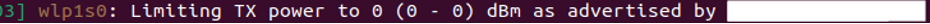 Bingo! “Limiting TX power to 0 (0 – 0)” is now shown in dmesg! We were able to fake a beacon management frame to tell the client to reduce their wireless card’s transmit power to 0 (“Tx-Power=0 dBm” below).