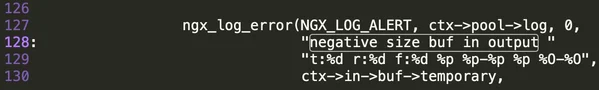 What is responsible for catching this? If we search for the string “negative size buf in output” we get a hit in src/core/ngx_output_chain.c.