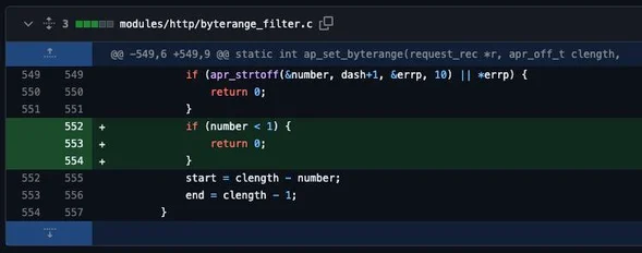 This bug was then fixed in the codebase itself (modules/http/byterange_filter.c) the next day on 25th August 2011 and the following days with further amendments to close out edge cases as and when people were bypassing I imagine.
